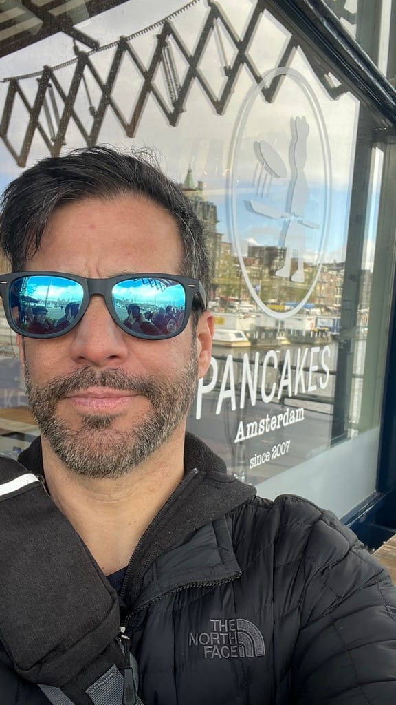 Back home we all shower and pack up to check out. Joris, our host, meets us and lets us store bags at the building. We have baked goods and coffee at a local cafe and drop off laundry before meeting our canal tour for an hour tool around the waterways of Amsterdam. It’s an underwhelming canal tour but we make the best of it. Afterward we trek back to pick up laundry and find a big flea market where Finn shops for a bit and scores a pair of jeans. We have lunch back at the Zocolo pizza place and head to the Rijksmueum for our last big to do in town.