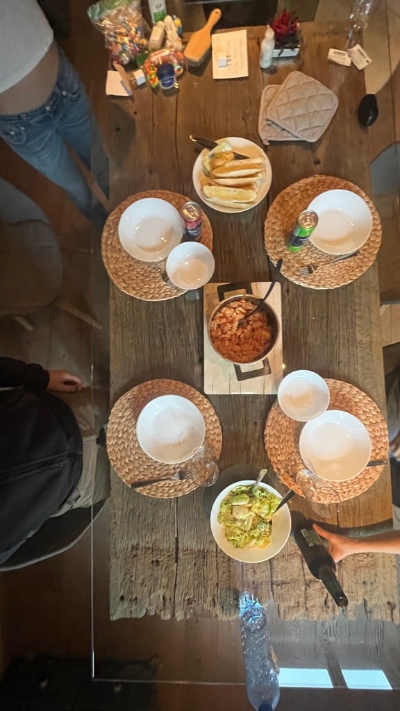 Finn and Karen make pasta for the family and we enjoy our first home cooked meal of the trip.
