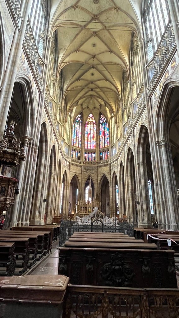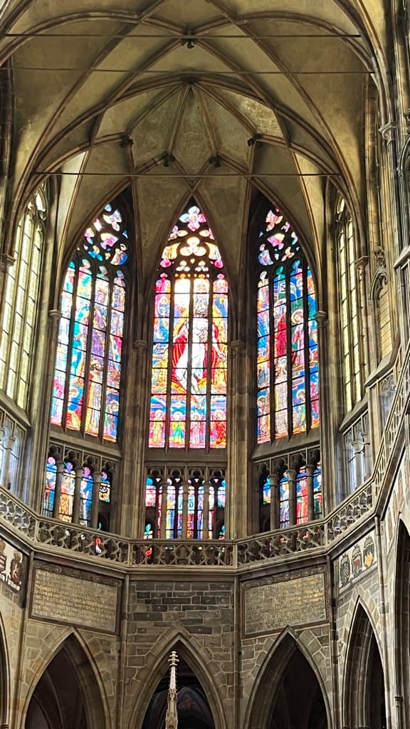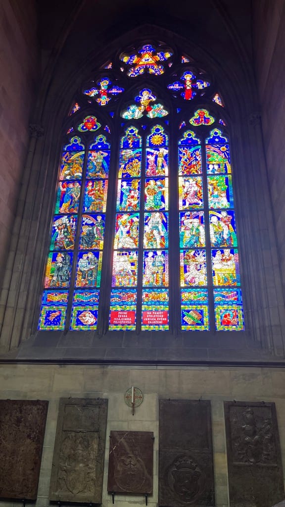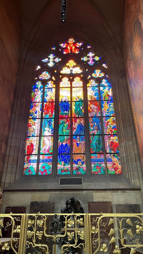 JD is up early and the town is super quiet. Hard to overstate how amazing the location of our apartment is and how good the view is. Mostecka 3/55. Once everyone is up, we go to the massive Prague castle on the hill, quite a hike up but well worth it. We visit the cathedral, the best stained glass in all of Europe IMO and climb the tower to the top for a sprawling panoramic view of Prague.