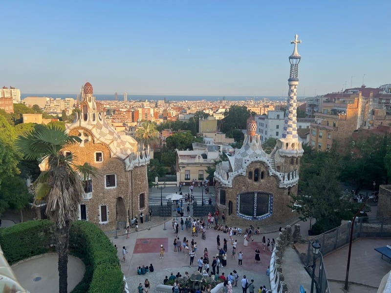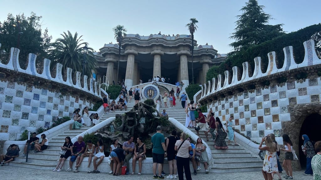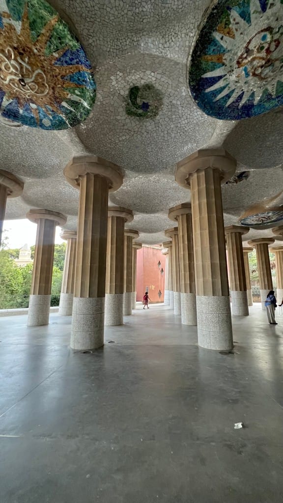 After the sagrada, we make our way back to the hotel for a quick refresh. Finn and dad go looking for a notorious thrift market, to no avail. It is only open on the weekends. We buy tickets for the Park Guell and make the long journey, and very steep climb up to the park for more Gaudi. The views are great though the park is a little bit underwhelming. Lots of walking today meant blister care for Finn (and some expert blister advice from the retired dancer)