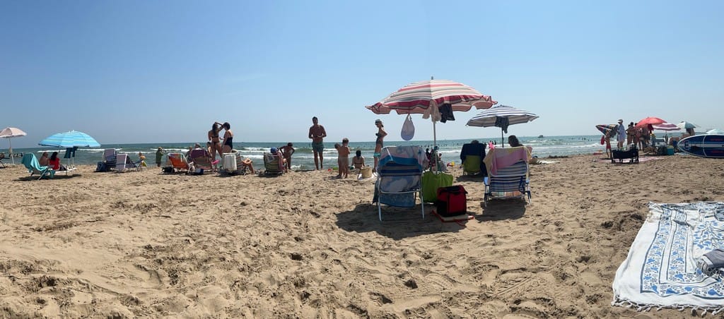 Up a little earlier and packed up for our second beach day. We hit the “cards square” for breakfast (crepes and waffles) and we take the waitresses advice and grab a taxi to Patacona. It’s scorchingly hot but the beach is lovely and the water is warm. It’s a crowded beach but the locals seems to know how to give each tower space and the lack of loud music and harassing touts make it lovely.