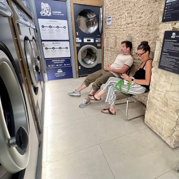 After we get into the apartment, the kids opt for some downtime while Karen and I go do laundry and track down the grocery store while we stock up for dinner in.