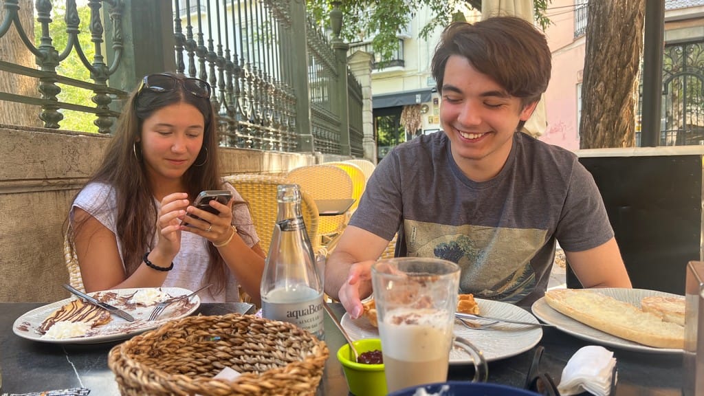 Everyone is feeling travel, fatigue, and hungry, we make a walk over to a vintage store called Humana, but it is underwhelming. We grab a taxi back to the Plaza de Santa Ana, and hit a grocery store to grab essentials to get us through the afternoon. Mom and Finn make homemade guacamole or I guess travel made guacamole, and we settle in to rest up for one last night out in Spain.